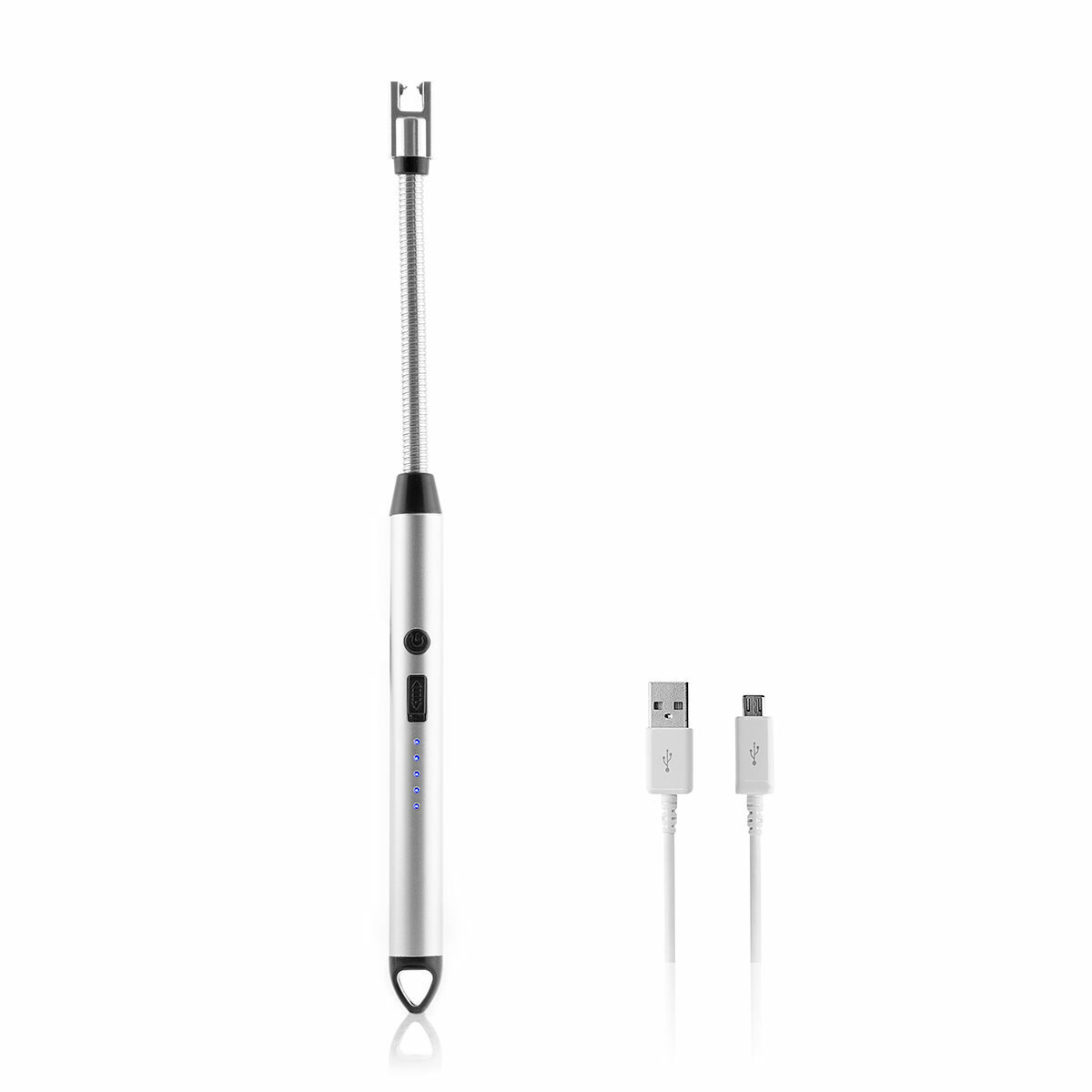Ce briquet électrique rechargeable et flexible est idéal pour l’intérieur et l’extérieur, car il ne s’éteint pas avec le vent, atteint les zones difficiles et permet une plus grande distance avec le point d’allumage pour éviter les brûlures. Comprend un câble USB vers micro USB.