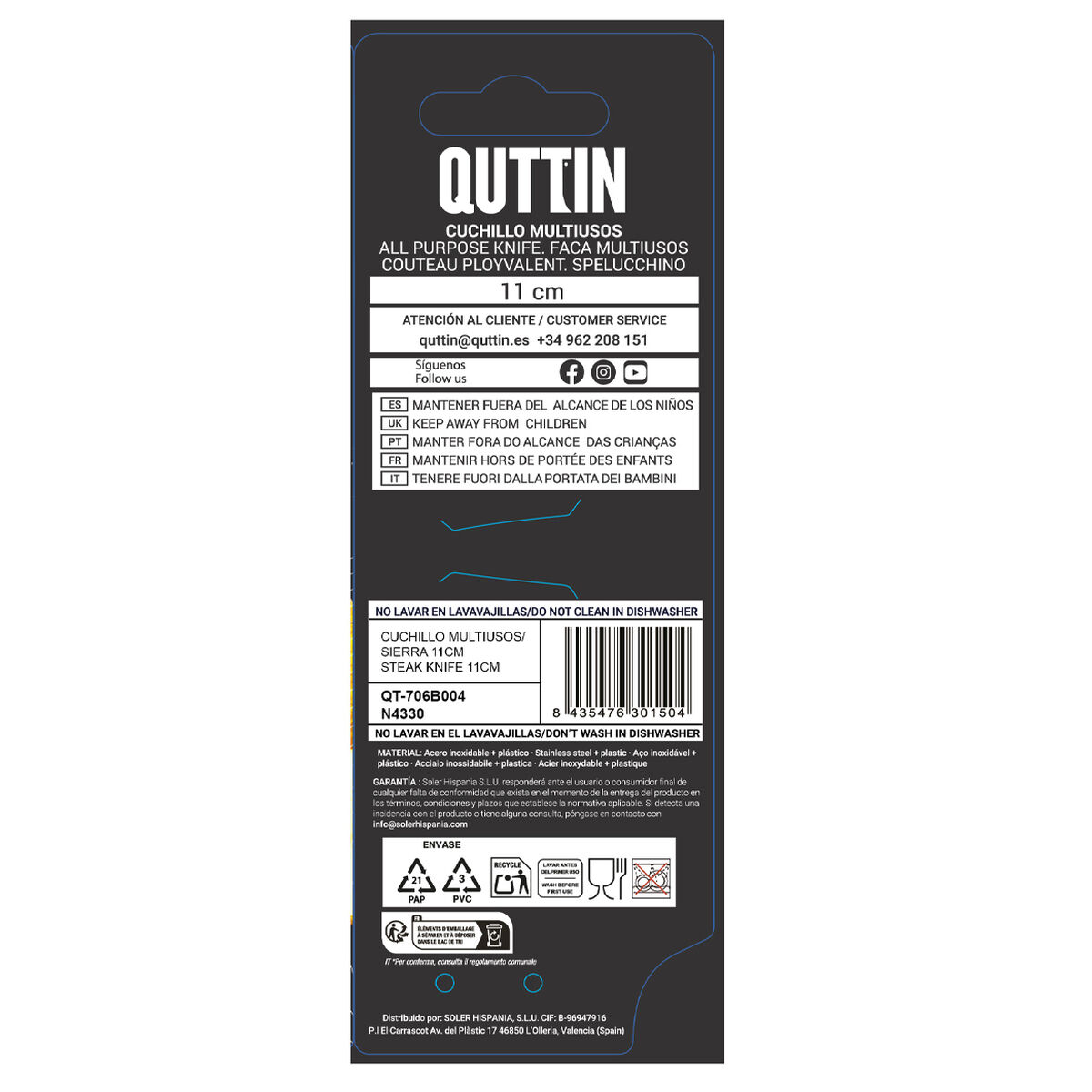 • Longueur de la lame du couteau: 11 cm