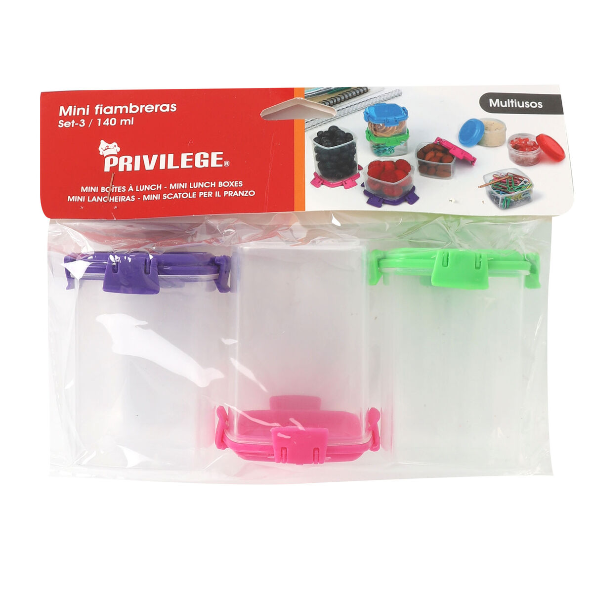 Si vous aimez prendre soin de chaque détail de votre maison et d'être à la dernière mode en matière de produits qui vous rendront la vie plus facile, achetez Ensemble de Boîtes à Lunch Privilege 140 ml 6,8 x 5 x 5 cm 3 Pièces (24 Unités) au meilleur prix.- Capacité: 140 ml