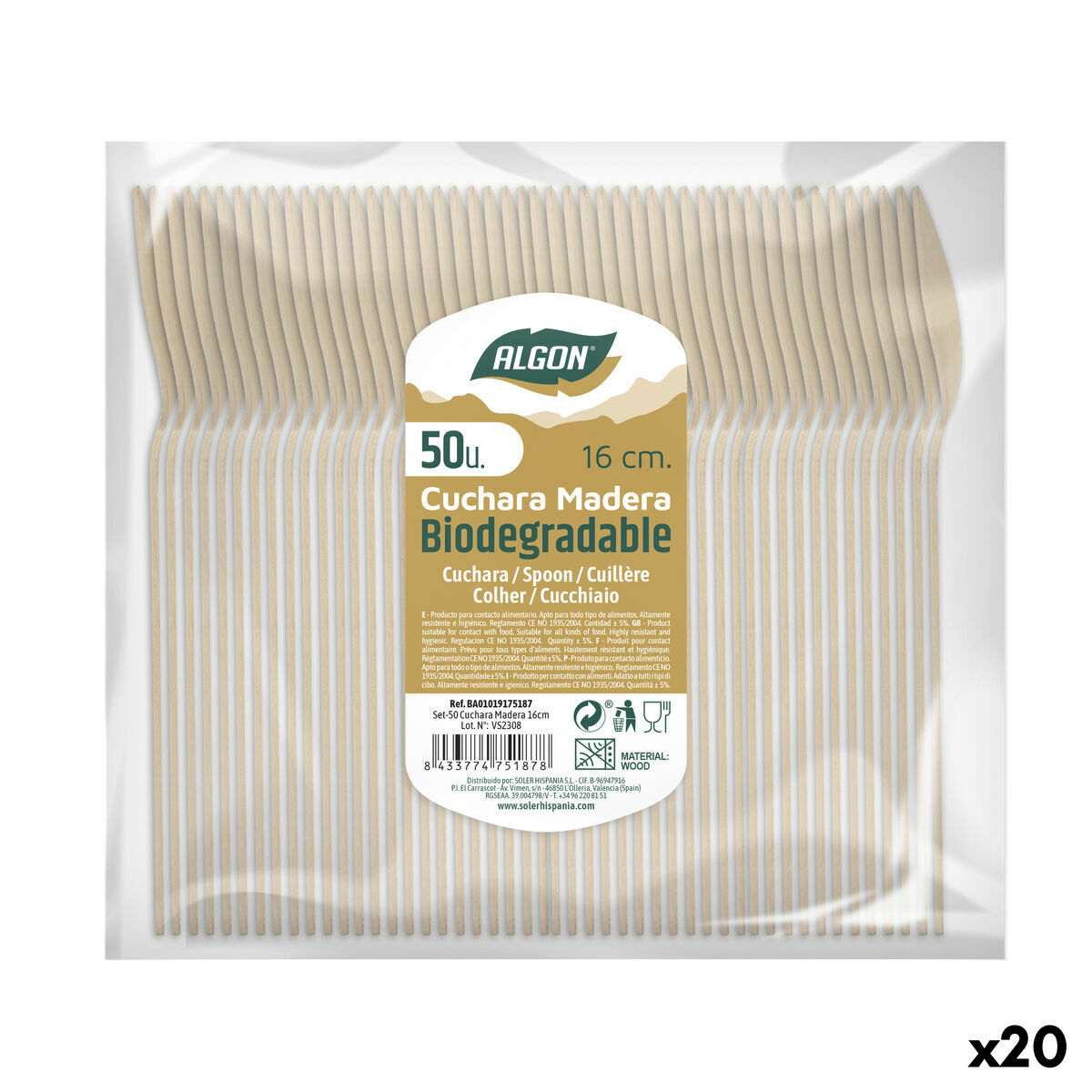 Si vous aimez prendre soin de chaque détail de votre maison et d'être à la dernière mode en matière de produits qui vous rendront la vie plus facile, achetez Ensemble de Cuillères Algon Bois 20 Unités 16 x 3 x 1 cm au meilleur prix.- Caractéristiques: Biodégradable