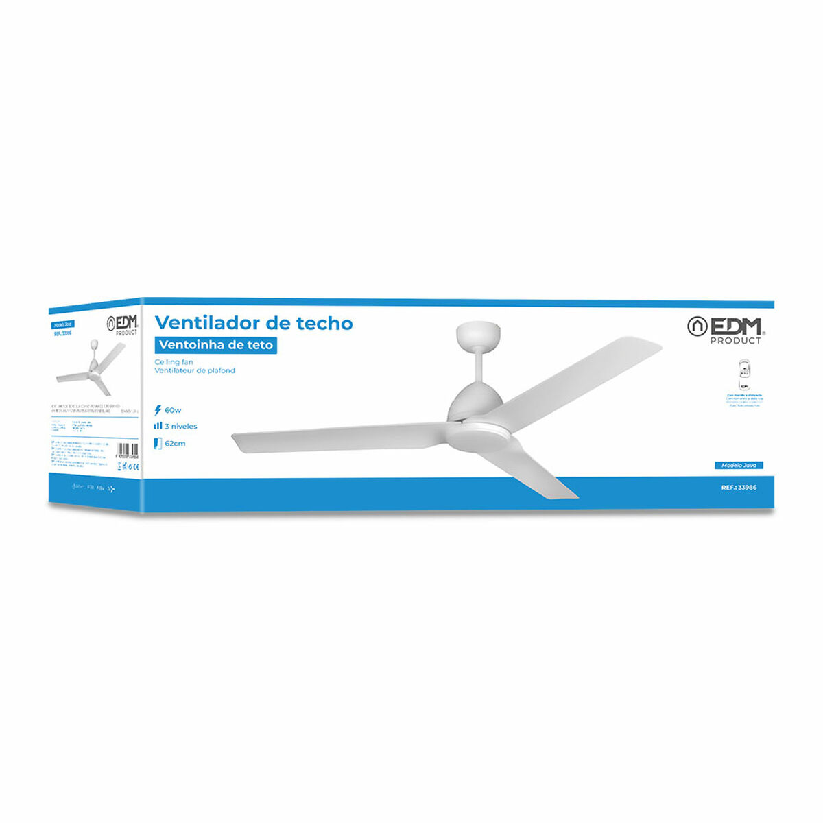 Ventilateur de Plafond EDM 33986 Java Blanc 60 W Ø 130 cm au meilleur prix.